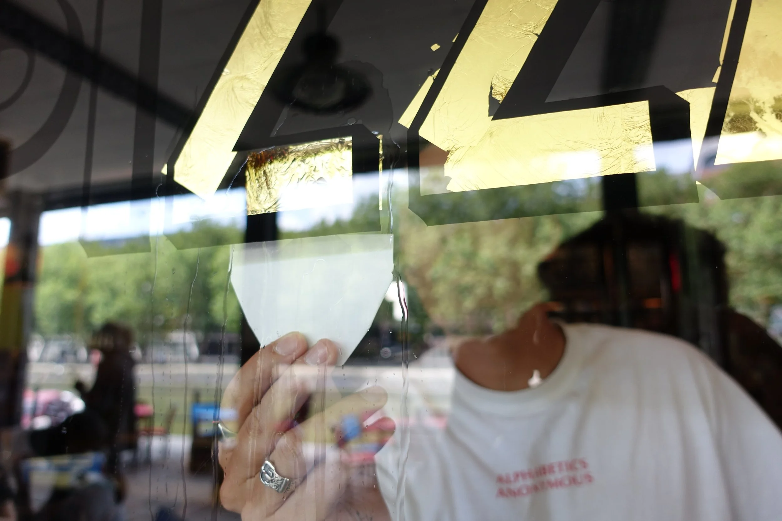 Designed, painted and Gilded Windows and Mural for a series of Restaurants across the UK. The Windows were Gilded with a combination of Matte and Mirror Gold leaf effects to make them pop out to passers-by.