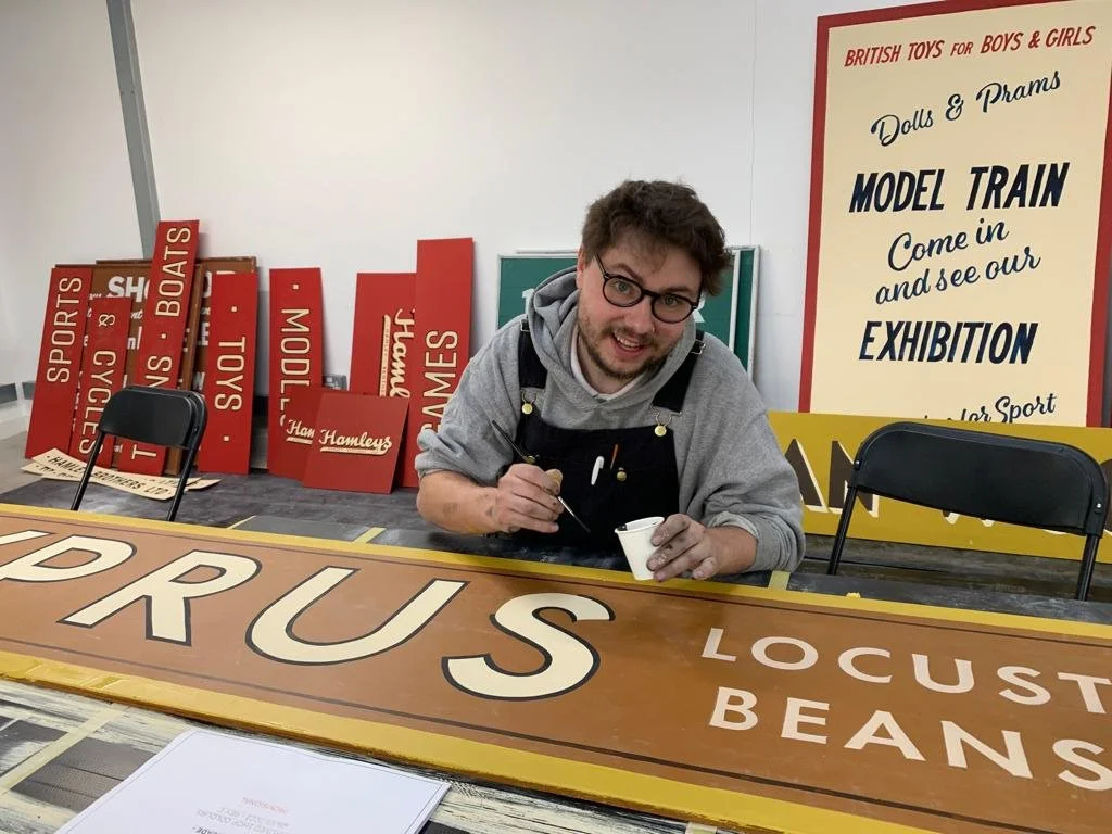 Hand Painted Lettering and Graphics designed by the Graphics team, aswell as other spur-of-the-moment signage and decoration painted on filming days. Mia Warner and I spent a few months painting across various sets for the 2025 film: The Blitz and called in a larger team of signwriters at times when workload increased.